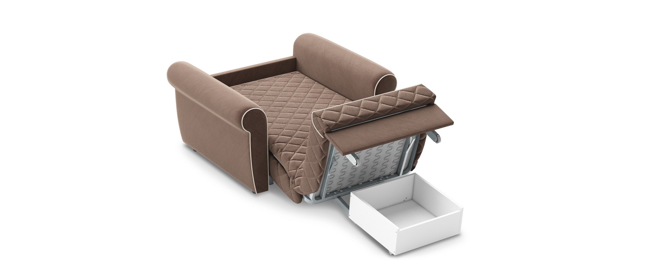 • При минимальных габаритах кресло обладает отличным спальным местом.