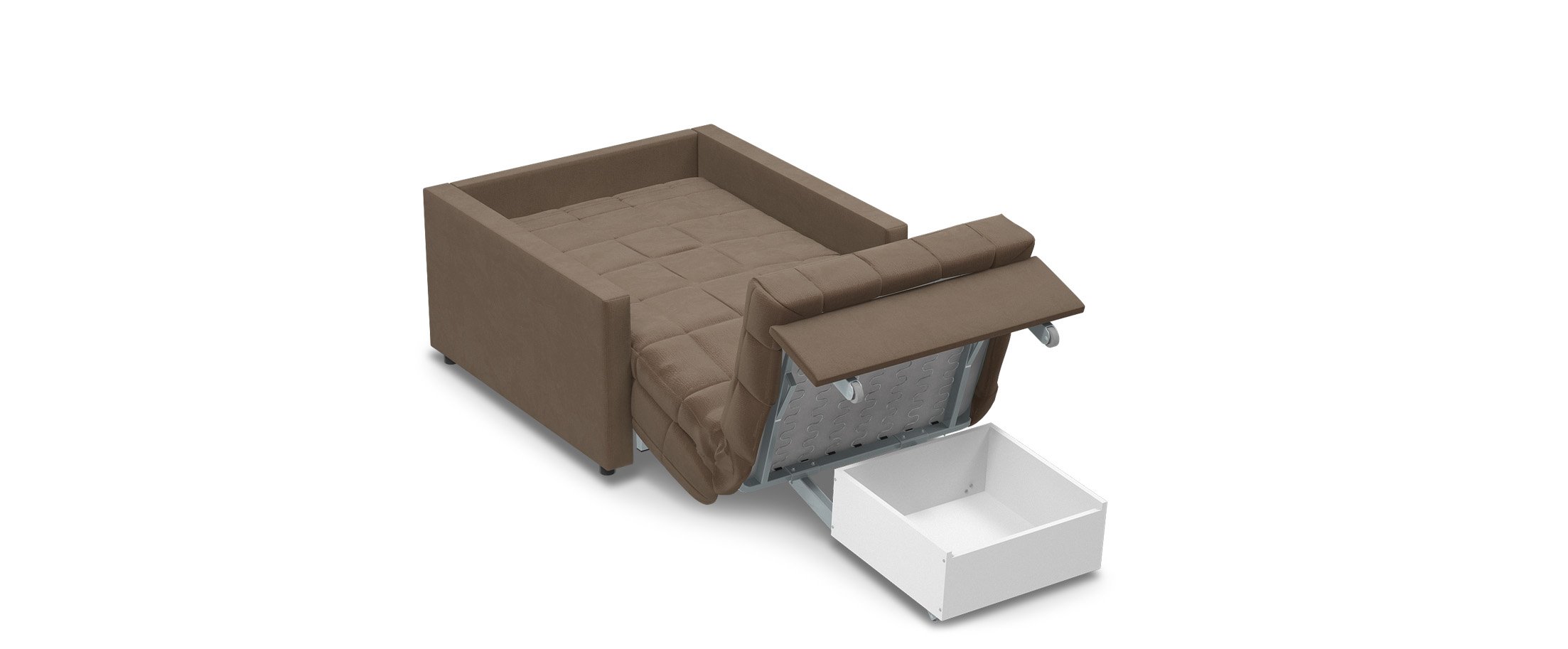 В качестве дополнительной опции к креслу-кровати предлагается бельевой короб, который устанавливается под механизм трансформации.