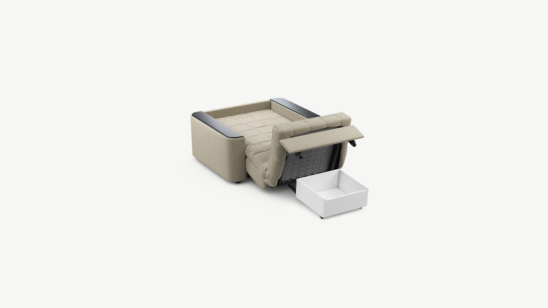 В качестве дополнительной опции к креслу-кровати предлагается бельевой короб, который устанавливается под механизм трансформации.