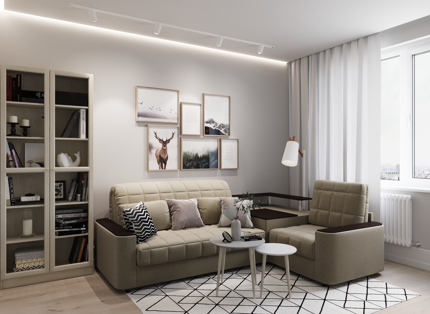 Объемные подлокотники — стильная деталь, отлично вписывающая диван в интерьер современной городской квартиры.