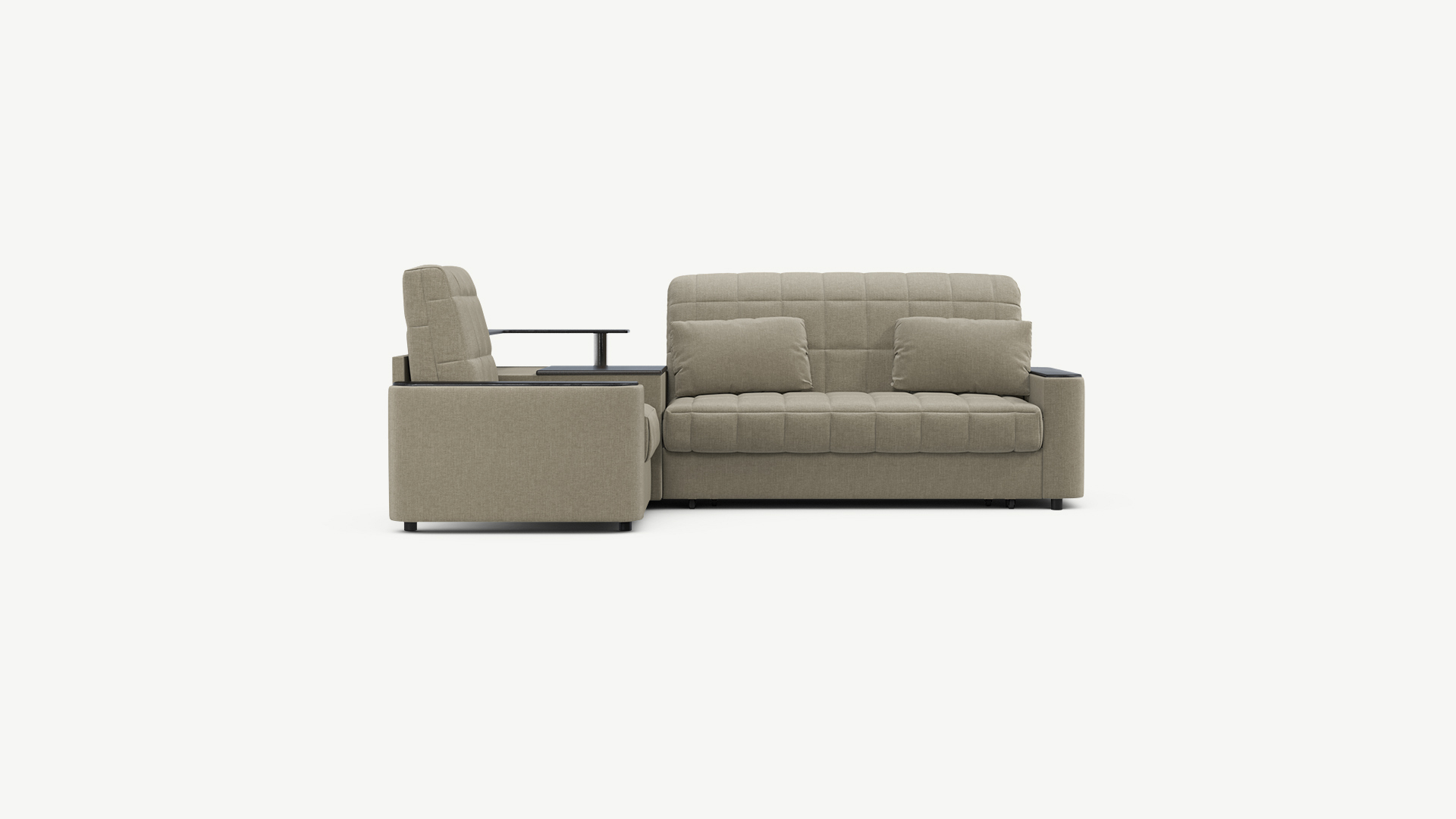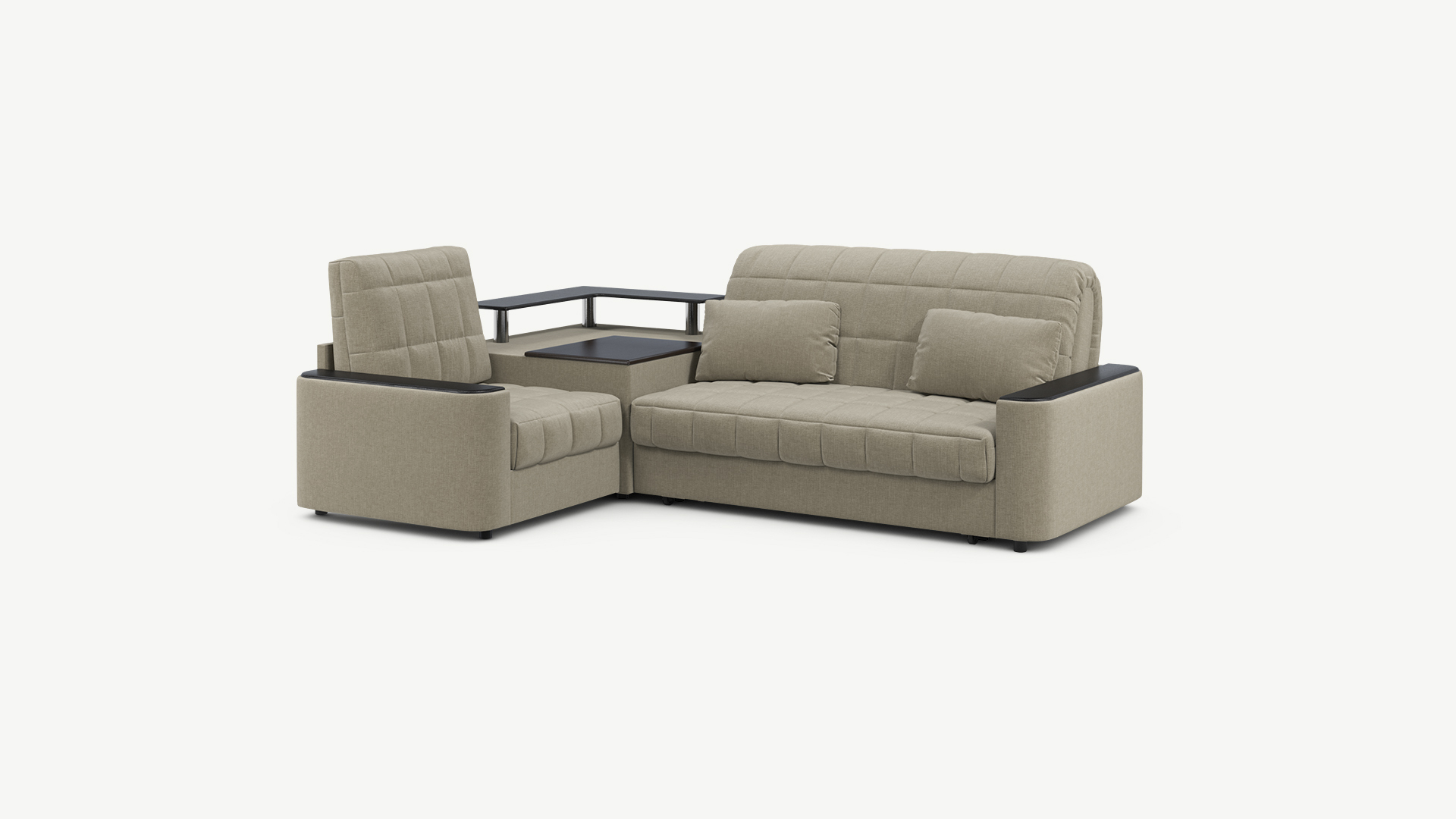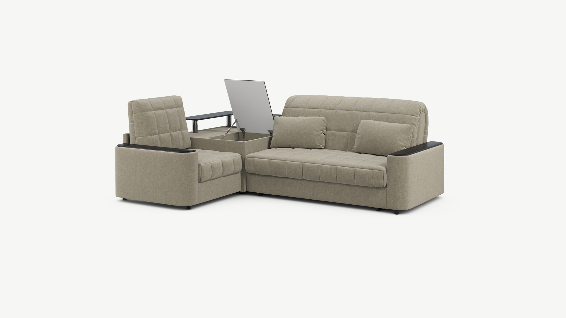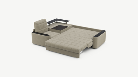 Выбирая угловой диван со столиком, Вы сможете проводить время с максимальным комфортом, многократно повысив функциональность дивана. Все дело в том, что под столешницей модуля расположена вместительная емкость для хранения. Кроме того, поверхность столика — идеальное пространство для чаепития в приятной компании, а также место для множества актуальных мелочей — от ноутбука до косметики.