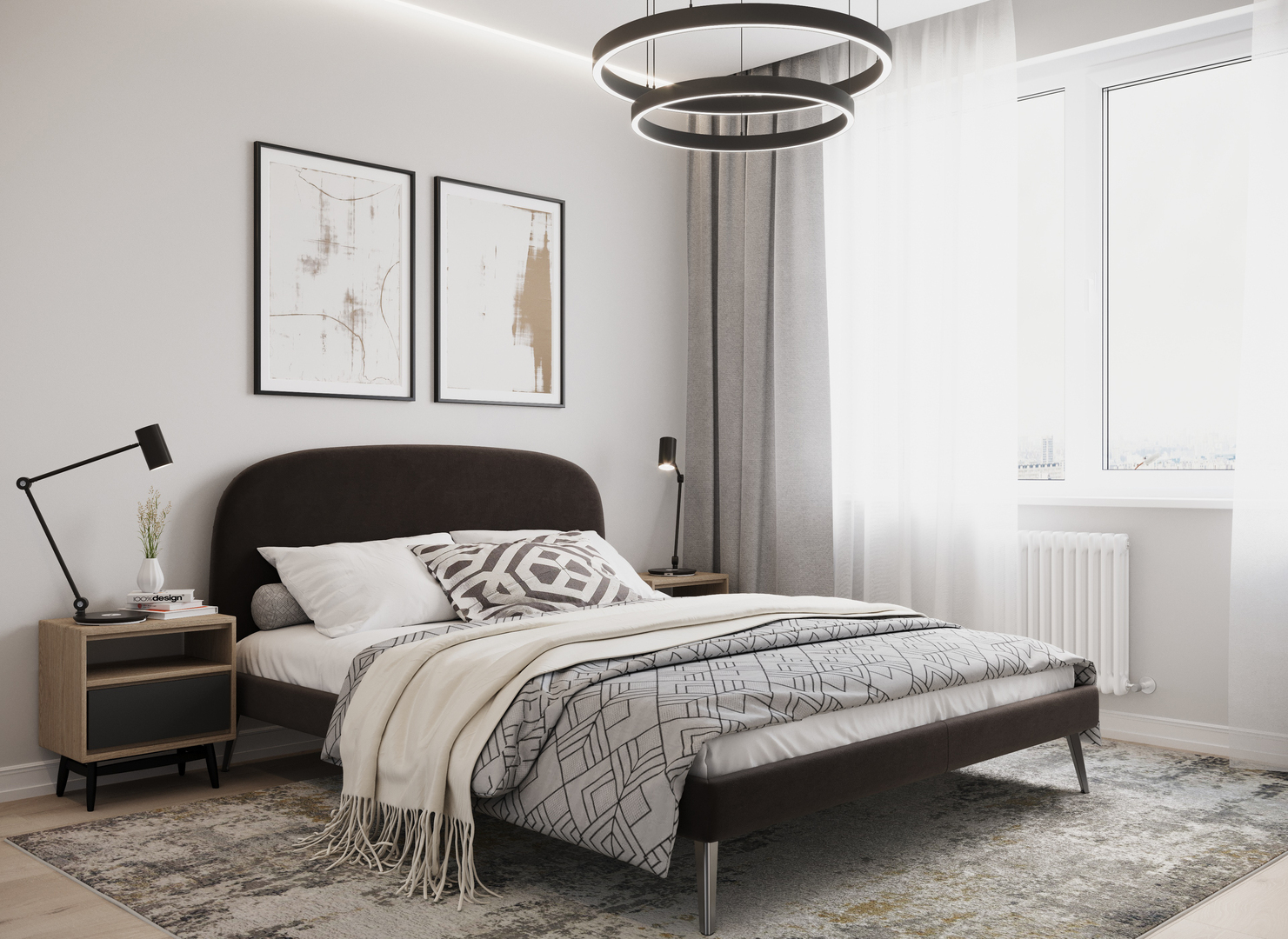 Создать гармоничный интерьер и завершить образ спальни помогут дополнительные аксессуары, например: тумбы, банкетки, подушки.