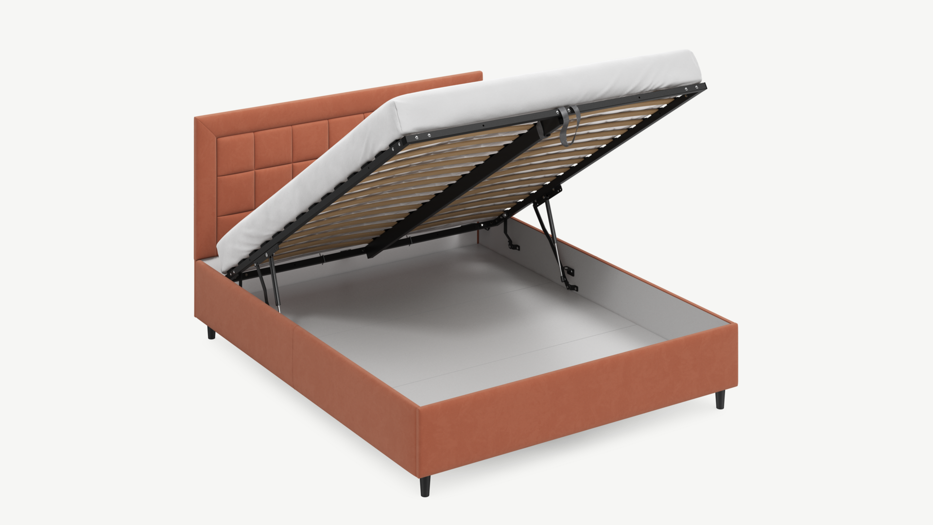 • Скрытая под основанием вместительная емкость без внутренних перегородок позволяет использовать всю площадь подкроватного пространства для хранения вещей.
