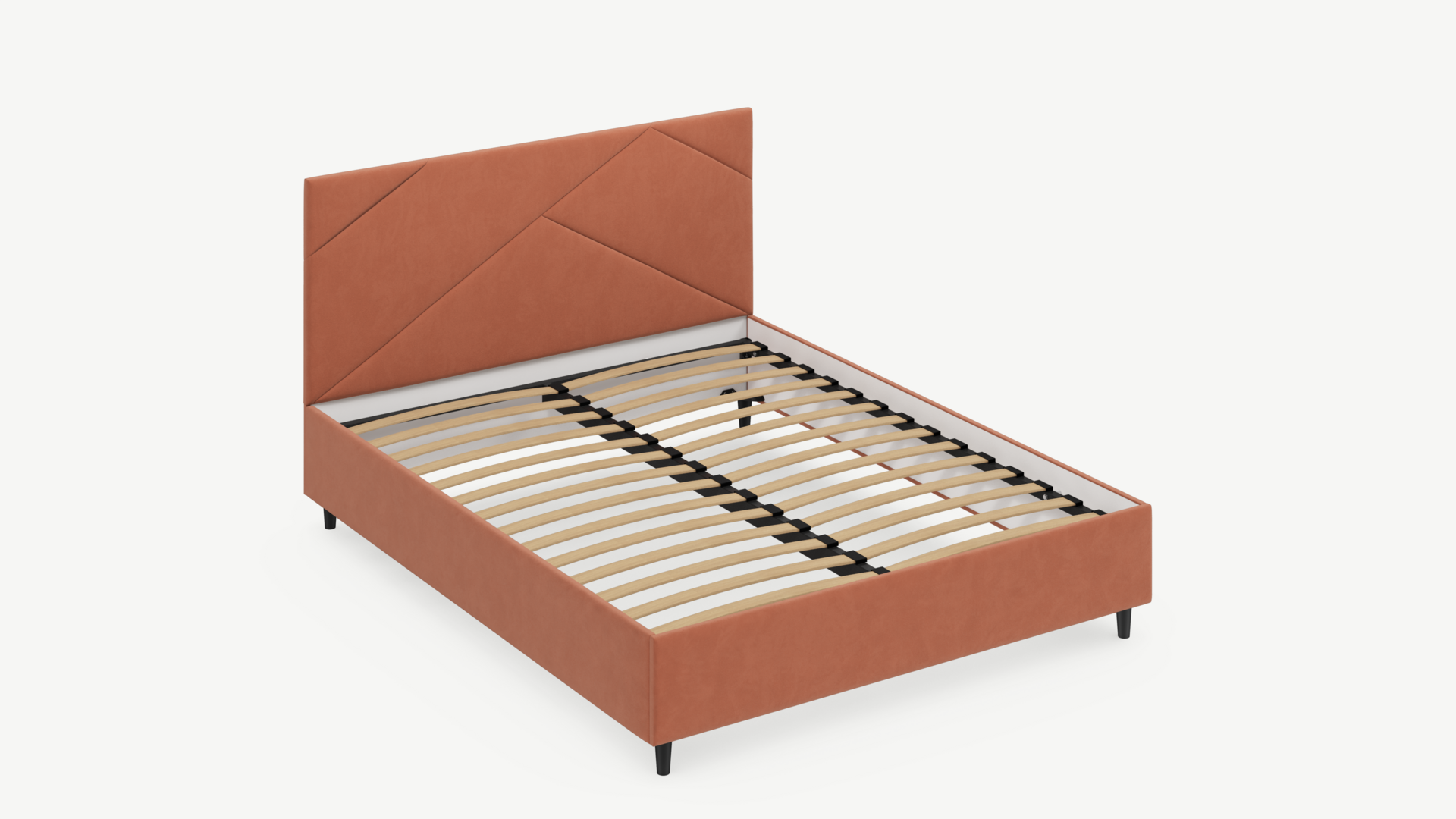 MOON FAMILY 1257 привлекает внимание оригинальным исполнением: широкие полосы ткани эффектно пересекают периметр изголовья, создавая на нем графический орнамент. Лаконичные формы объемных царг создают единый гармоничный образ и фокусируют внимание на центральном текстурном элементе кровати.