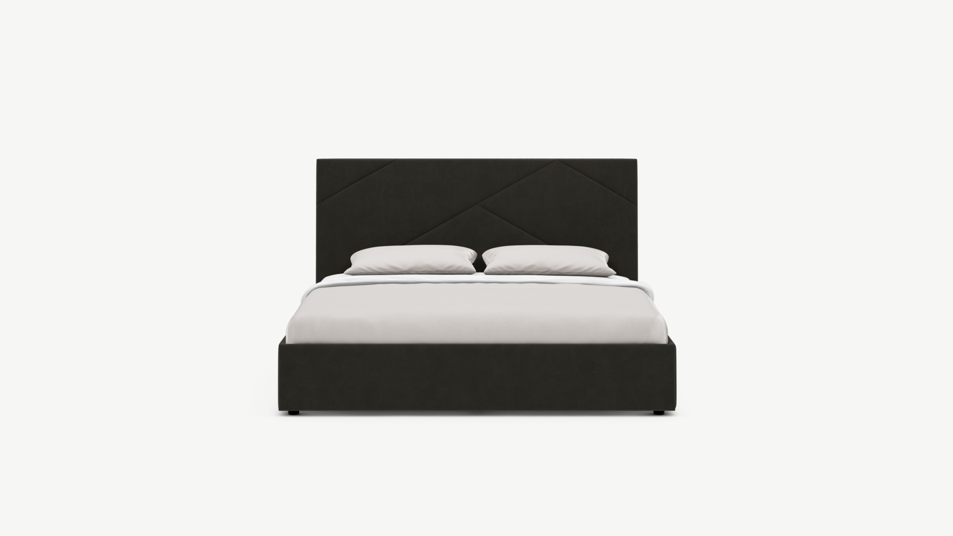 MOON FAMILY 1257 привлекает внимание оригинальным исполнением: широкие полосы ткани эффектно пересекают периметр изголовья, создавая на нем графический орнамент. Лаконичные формы объемных царг создают единый гармоничный образ и фокусируют внимание на центральном текстурном элементе кровати.