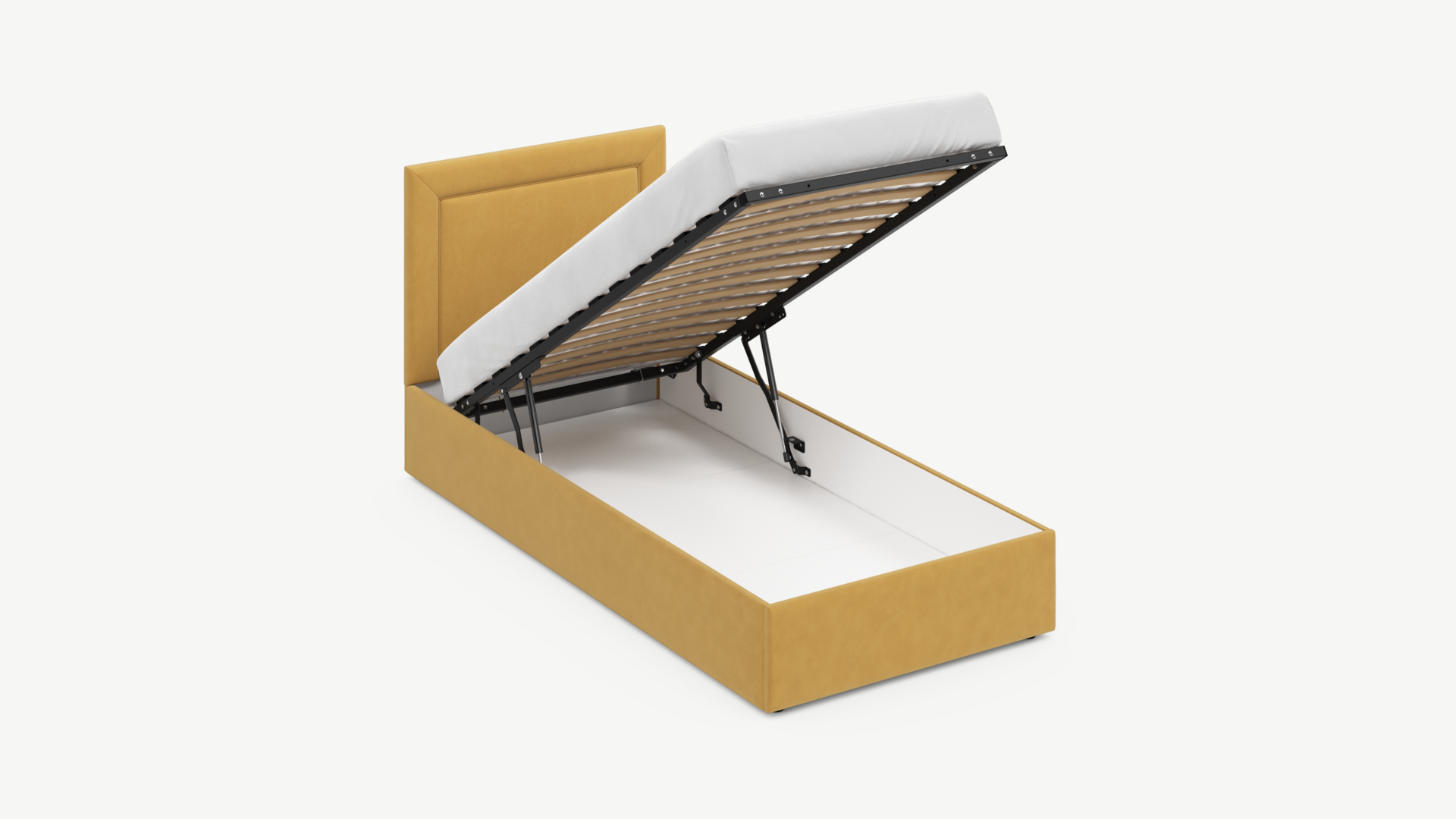 Регулируемый подъемный механизм с газовыми амортизаторами позволяет плавно и бесшумно поднимать и опускать спальное место.