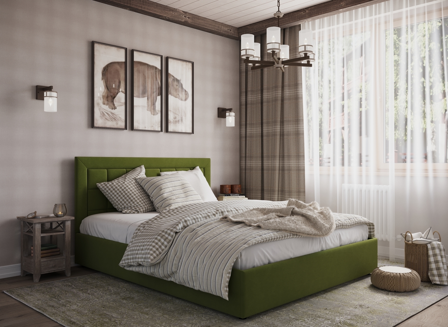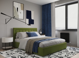 Стежка помещена в центр изголовья и обрамлена, словно картина. Объемные царги становятся гармоничным дополнением образа и завершают цельную фигуру кровати.