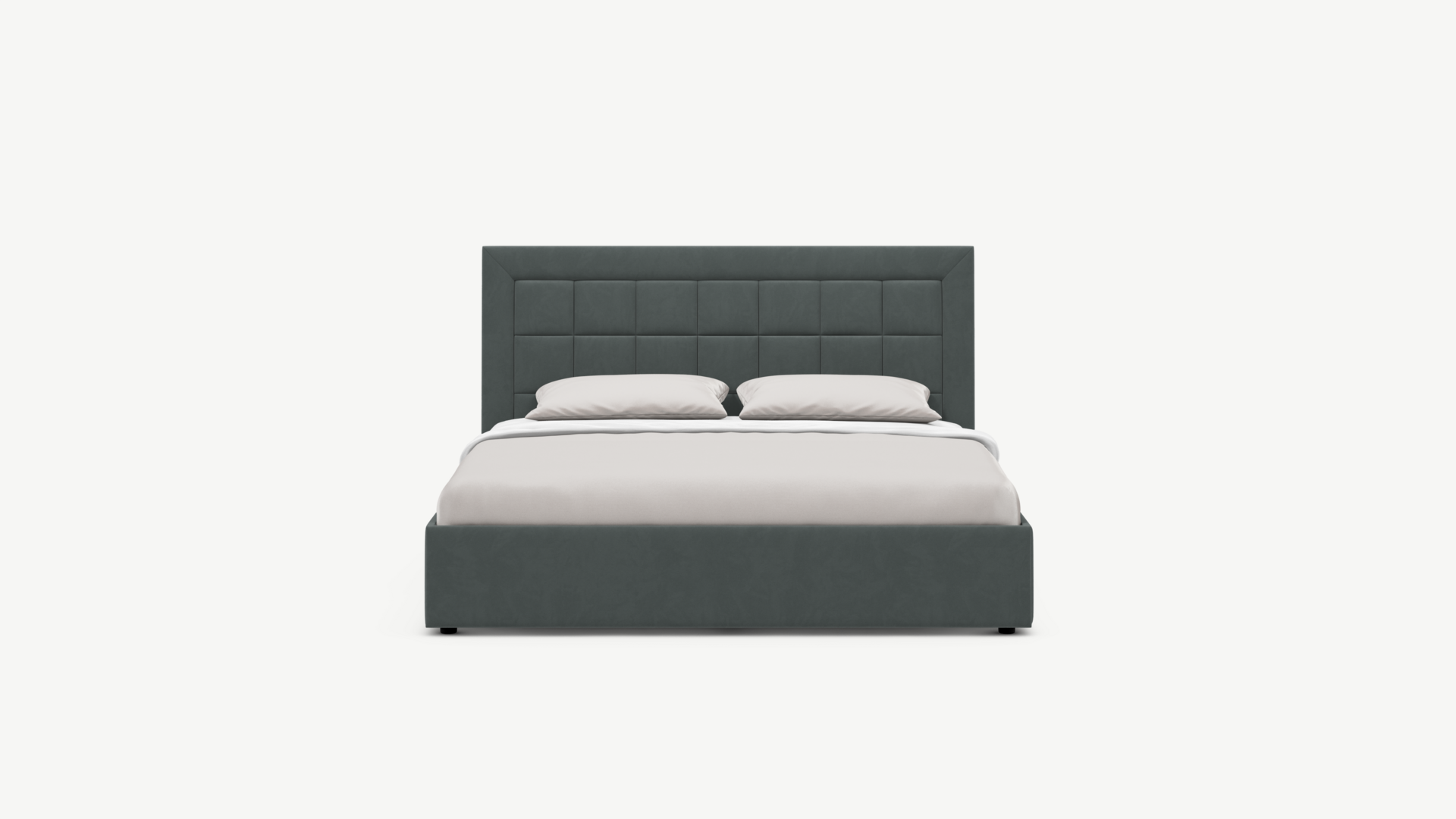 Изголовье декорировано рельефным рисунком стежки в крупный квадрат, получившим особую фактуру за счет глубины шва.