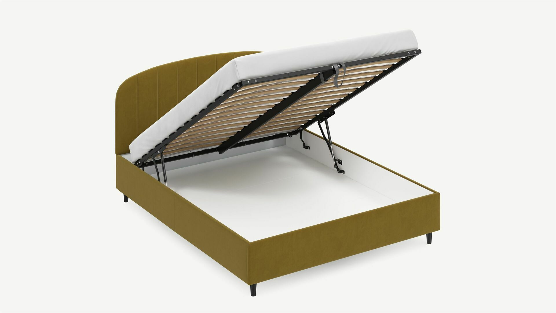 • Скрытая под основанием вместительная емкость без внутренних перегородок позволяет использовать всю площадь подкроватного пространства для хранения вещей.