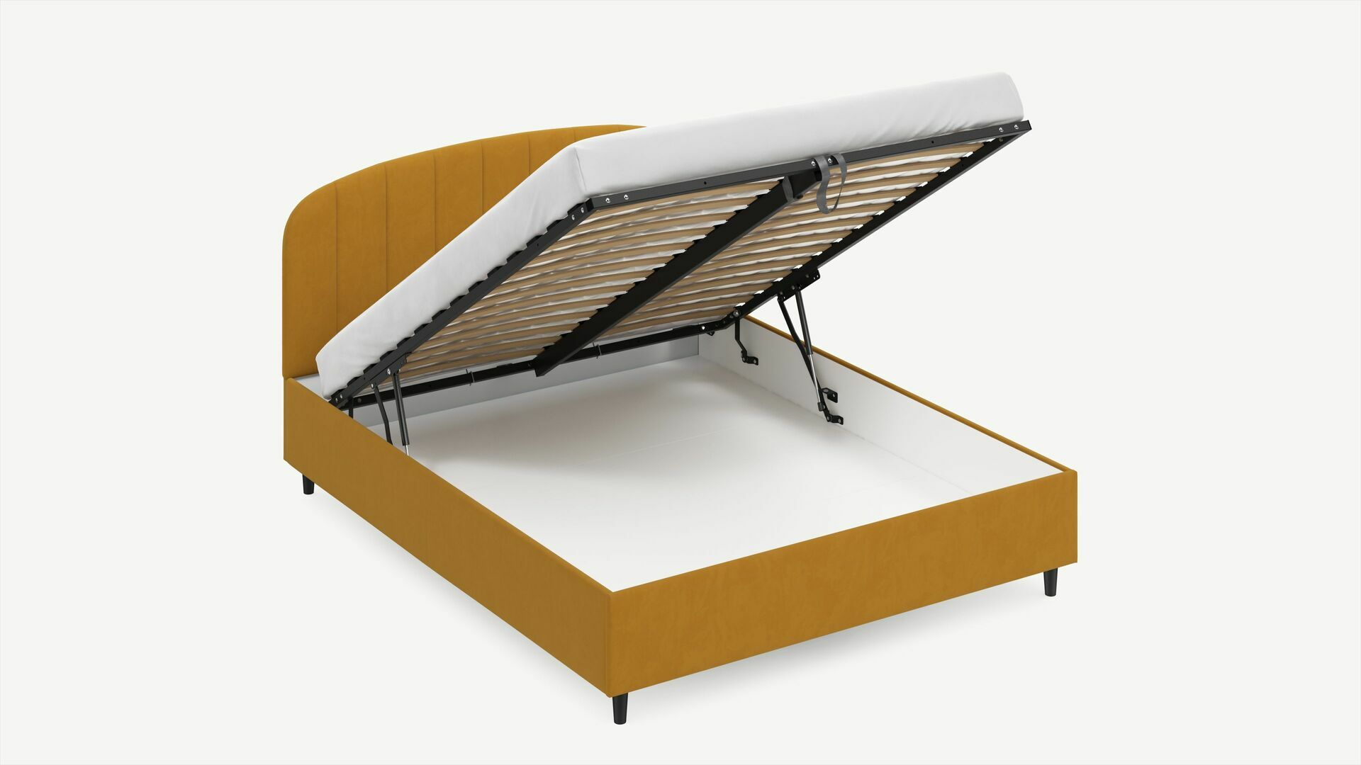 • Скрытая под основанием вместительная емкость без внутренних перегородок позволяет использовать всю площадь подкроватного пространства для хранения вещей.