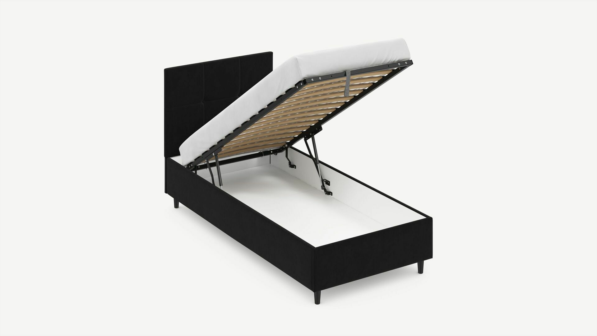 • Скрытая под основанием вместительная емкость без внутренних перегородок позволяет использовать всю площадь подкроватного пространства для хранения вещей.