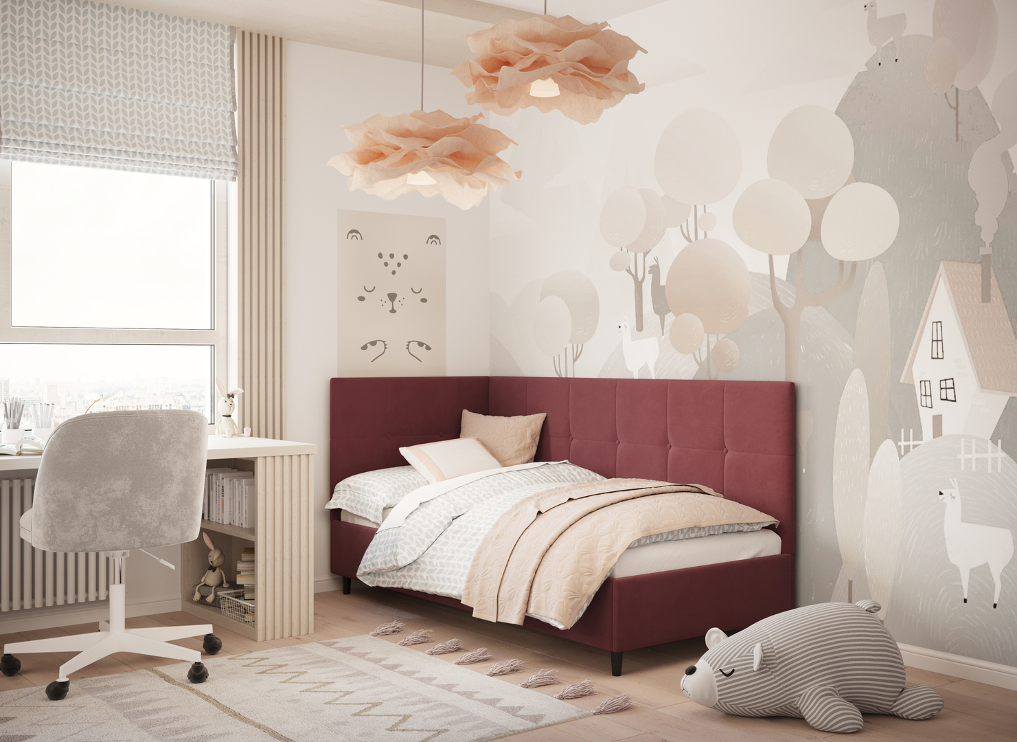 В подростковой комнате эта кровать станет стильным акцентом окружающего интерьера и возьмет на себя роль удобной кушетки для друзей, зашедших в гости.