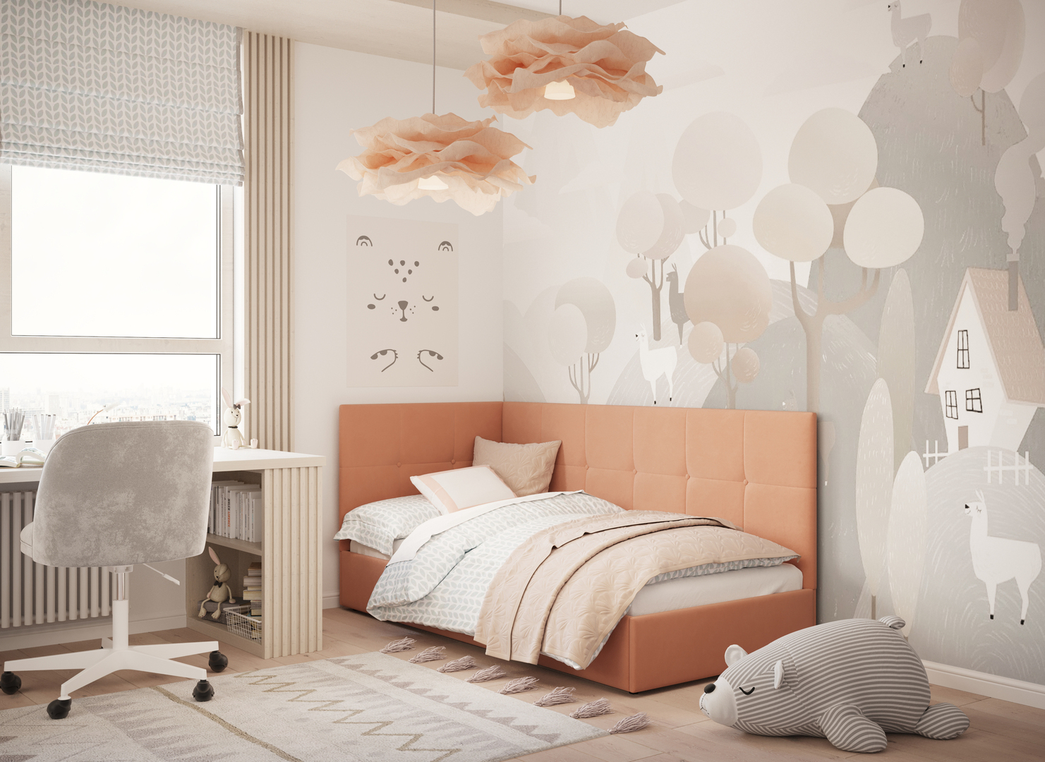 MOON FAMILY 1261 объединяет функциональность и стиль, создавая гармоничное пространство для отдыха и творчества. Кровать доступна в левостороннем и правостороннем исполнении, что позволяет легко адаптировать ее под любые интерьерные особенности.