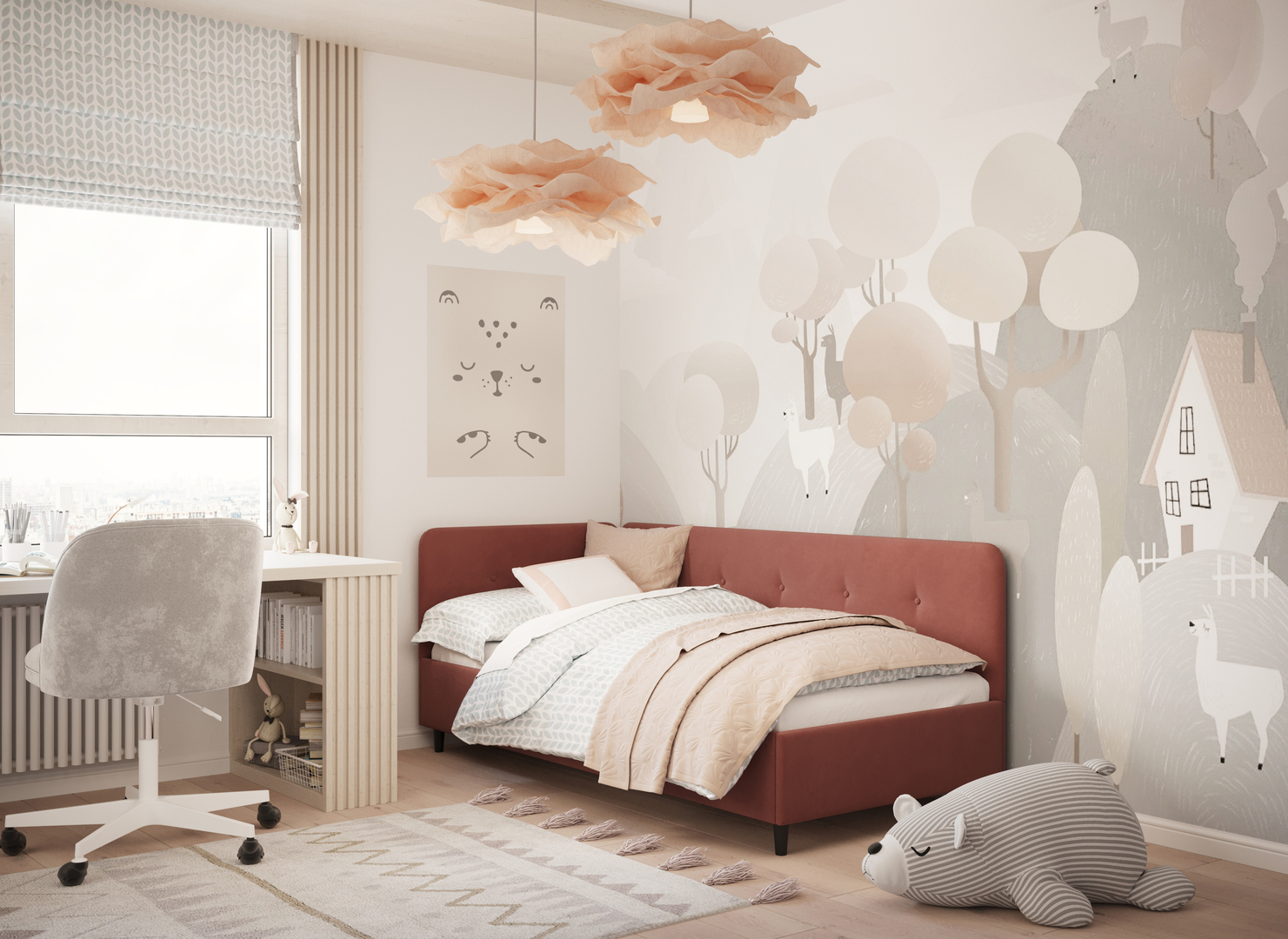 В подростковой комнате эта кровать станет стильным акцентом окружающего интерьера и возьмет на себя роль удобной кушетки для друзей, зашедших в гости.