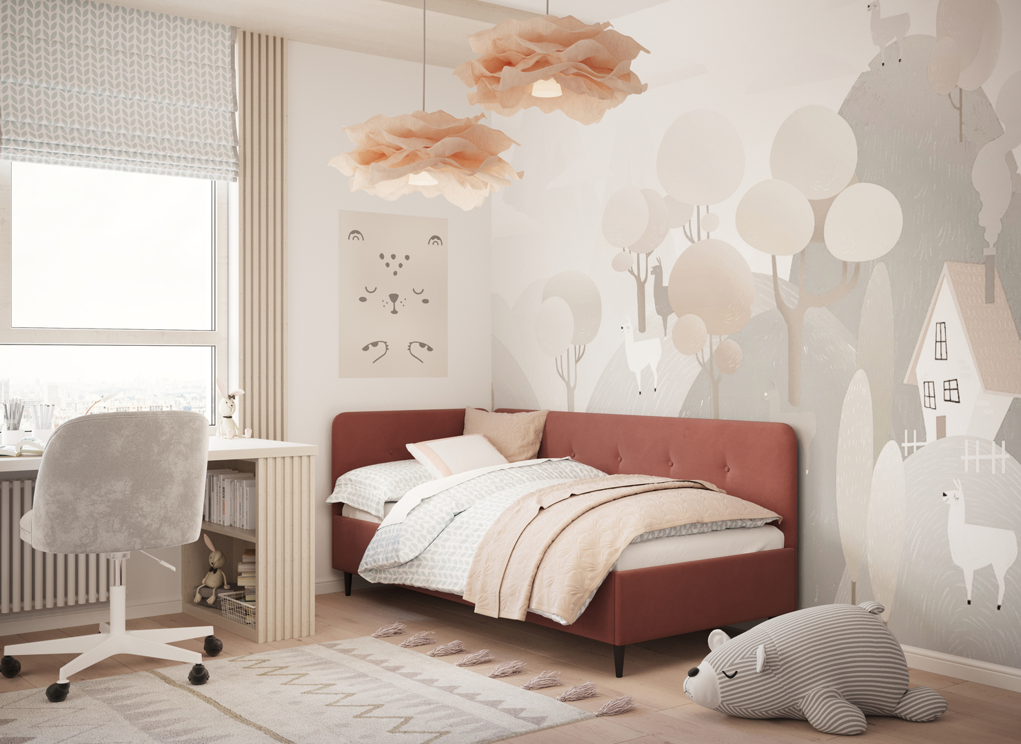 В подростковой комнате эта кровать станет стильным акцентом окружающего интерьера и возьмет на себя роль удобной кушетки для друзей, зашедших в гости.