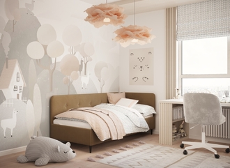 В подростковой комнате эта кровать станет стильным акцентом окружающего интерьера и возьмет на себя роль удобной кушетки для друзей, зашедших в гости.