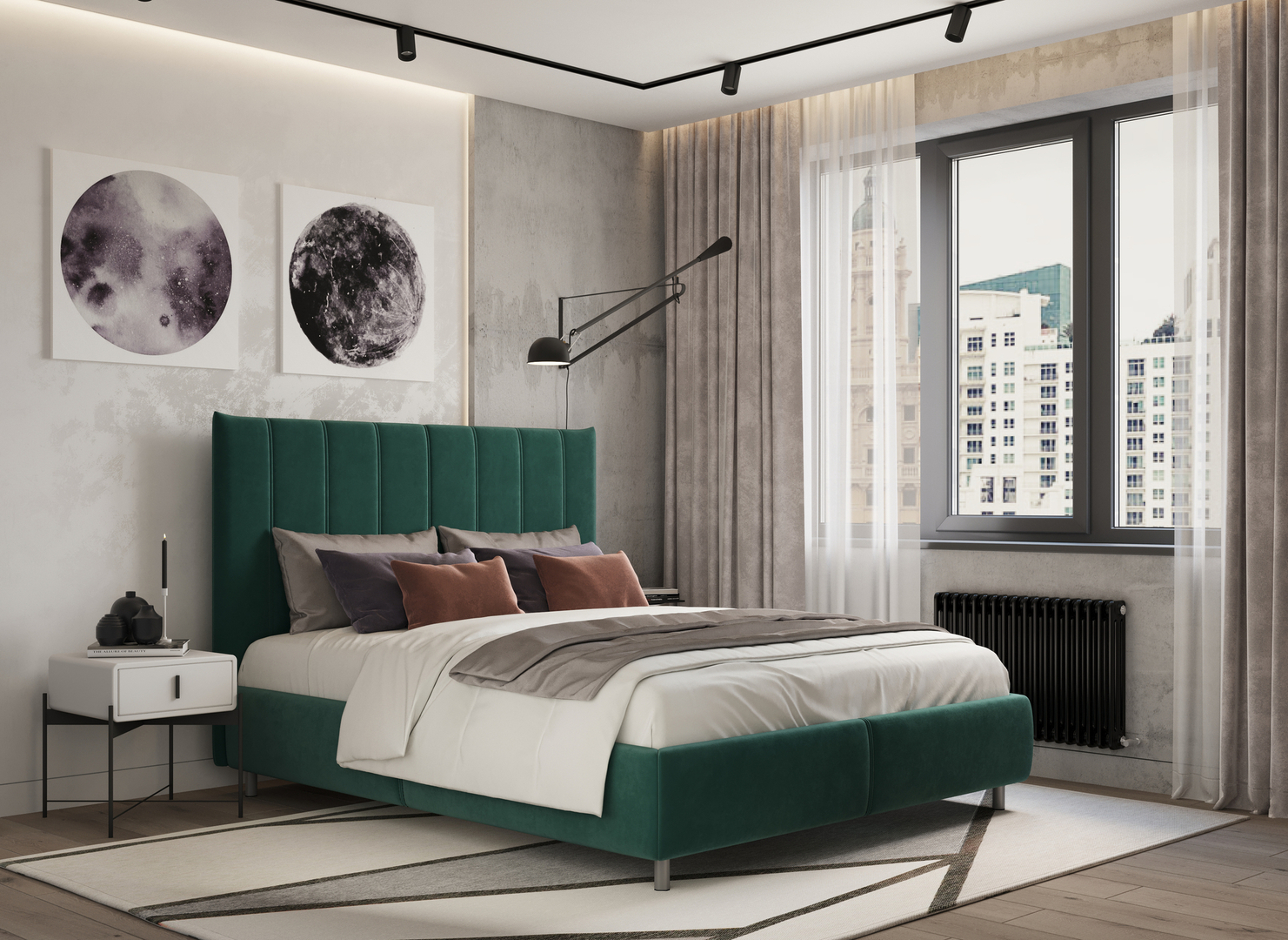 Для кровати MOON 1161 возможно использование одного или нескольких видов обивочного материала разных цветов и фактур. Выбирая ткань для изголовья, обратите внимание на велюр, который выгодно подчеркнет объем декоративной стежки. Удачным материалом для царги может стать подобранный в тон фактурный шенилл. Выбирая ткань по своему вкусу и настроению, Вы определяете звучание спальни.