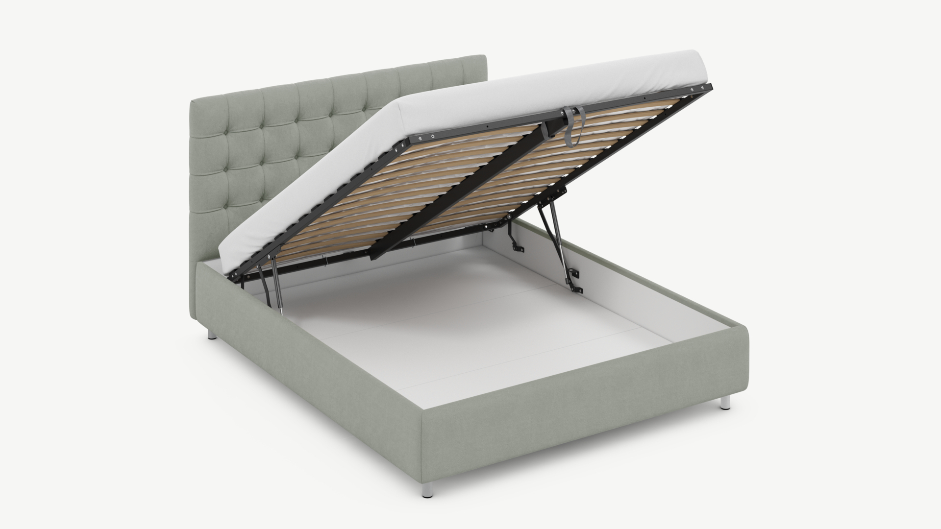 • Скрытая под основанием вместительная емкость без внутренних перегородок позволяет использовать всю площадь подкроватного пространства для хранения вещей.