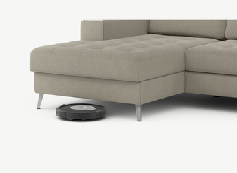 Благодаря высоким наклонным опорам под диваном проходит робот-пылесос и легко проводится влажная уборка, что обеспечивает чистоту и порядок в доме.