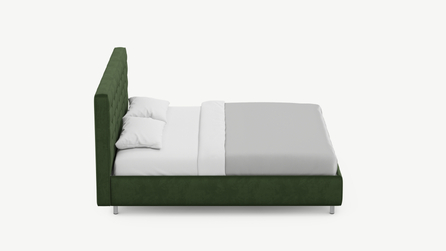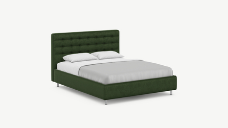 Оформите образ кровати, выбирая обивочный материал, который подчеркнет звучание Вашей спальни и отразит Ваш вкус. Обратите внимание на однотонный гладкий велюр, который усиливает объемную фактуру стежки.